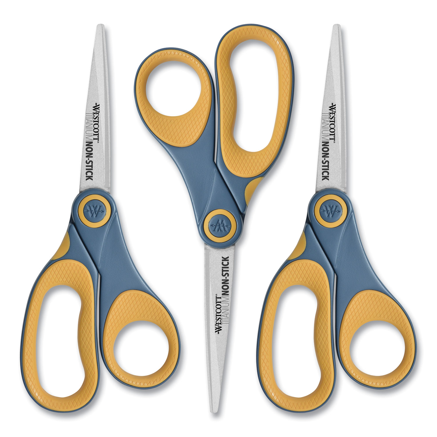 Non-Stick Titanium Bonded Scissors, 8″ Long, 3.25″ Cut Length, Gray/yellow Straight Handles, 3/pack