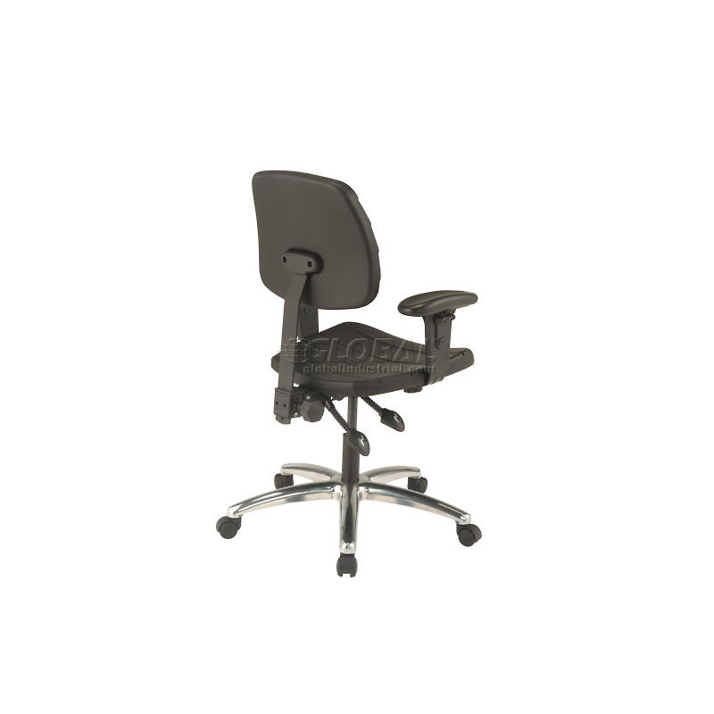 This posture chair is great for use in drafting, studios and shops. This drafting chairs ergonomic design and engineering helps provide proper work posture that improves productivity and helps reduce fatigue. The ribbed seat and back of this drafting chair provides comfort and support for extended sitting periods. High density foam core and seat plate reinforcement offer wear and puncture resistance. This modern polyurethane chairs ribbed back is contoured for lumbar support. Features large seat and back; Seat measures 20″W x 18″D x 2″ thick. Back measures 17-3/4″W x 13-1/2″H x 1-1/2″ thick. Waterfall edge seat helps improve leg circulation. Extra large 26″ diameter chrome plated steel 5-blade base. 17″ -22″ pneumatic seat height adjustment. Other ergonomic adjustments include back angle and back height adjustment. Armrests measure 4″W x 10″L and are contoured for full arm support. Armrests are adjustable up to 3 vertically and 1-1/2″ side-to-side. Easy assembly. 1 Year Limited Warranty. Compatible glides sold separately.