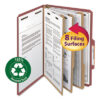 100% Recycled Pressboard Classification Folders, 3 Dividers, Legal Size, Red, 10/box