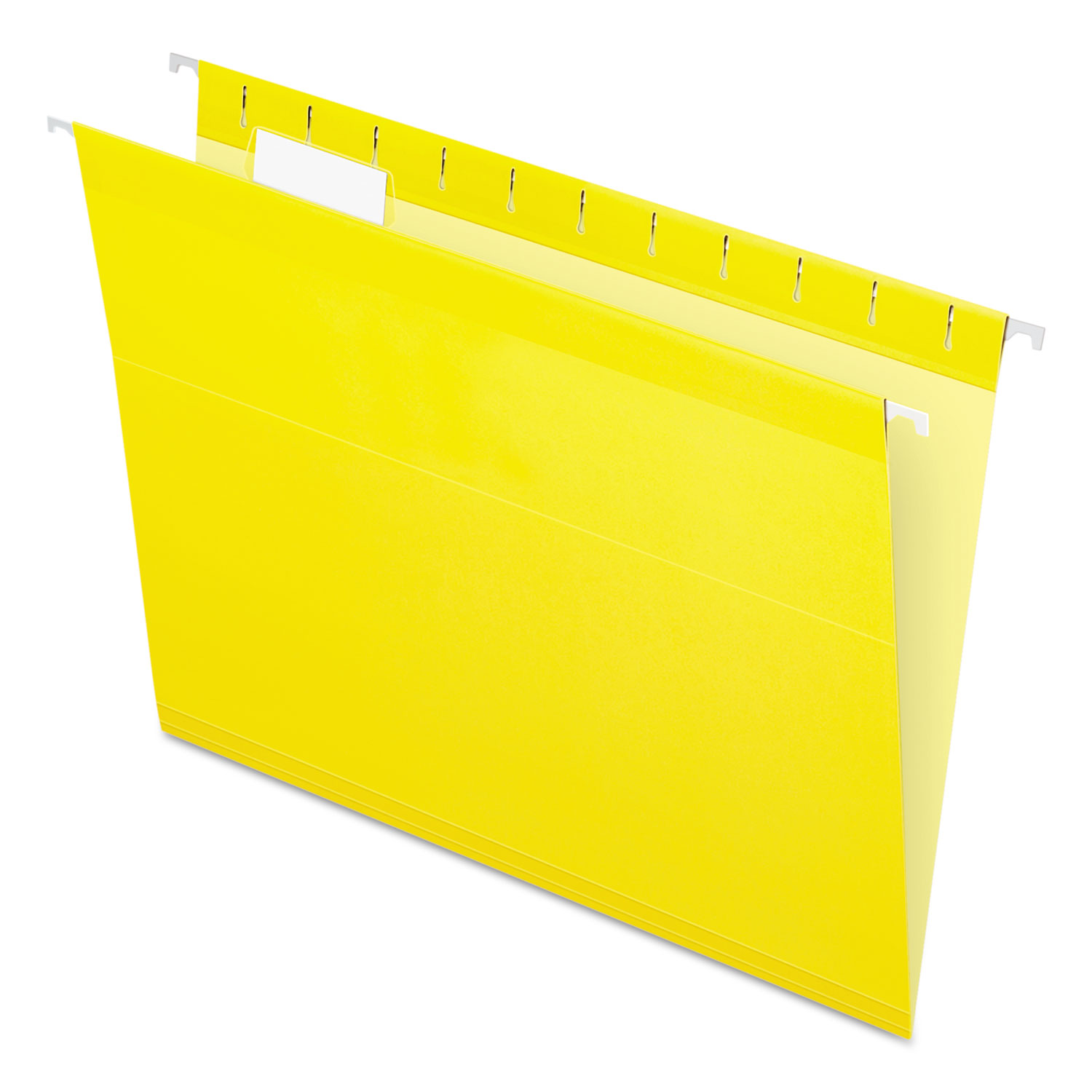 Colored Reinforced Hanging Folders, Letter Size, 1/5-Cut Tab, Yellow, 25/box