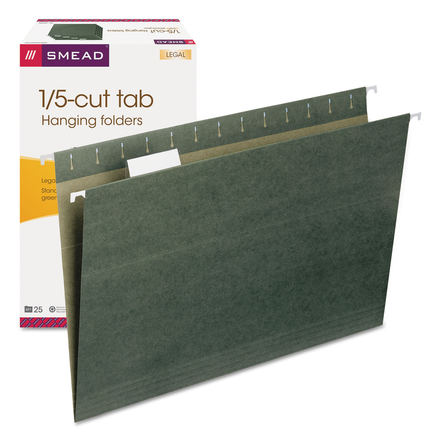 Hanging Folders, Legal Size, 1/5-Cut Tab, Standard Green, 25/box