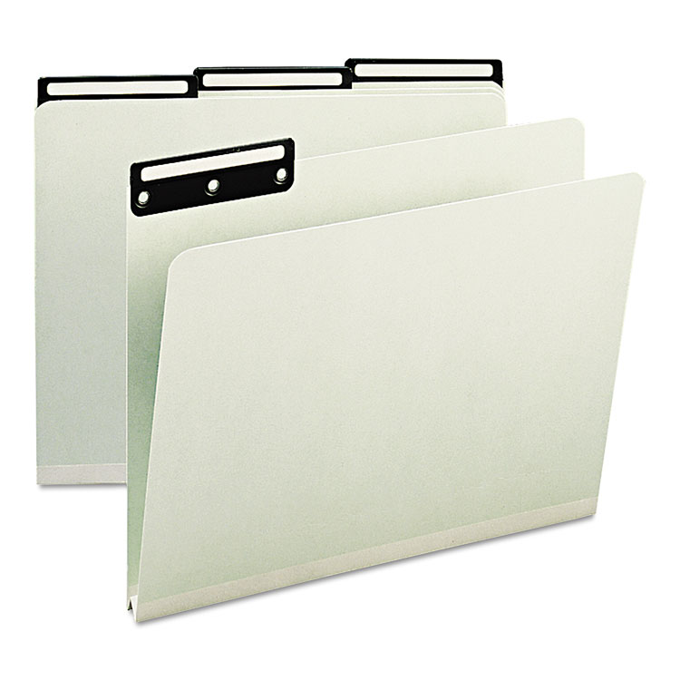 Recycled Heavy Pressboard File Folders With Insertable Metal Tabs, 1/3-Cut Tabs, Letter Size, Gray-Green, 25/box
