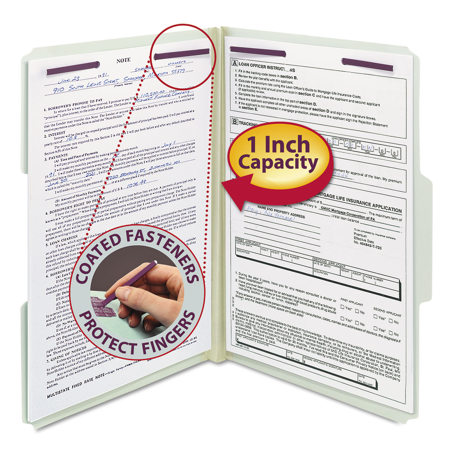Recycled Pressboard Folders With Two Safeshield Coated Fasteners, 1/3-Cut Tabs, 1″ Expansion, Legal Size, Gray-Green, 25/box