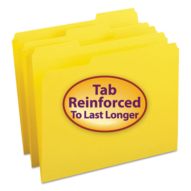 Reinforced Top Tab Colored File Folders, 1/3-Cut Tabs, Letter Size, Yellow, 100/box
