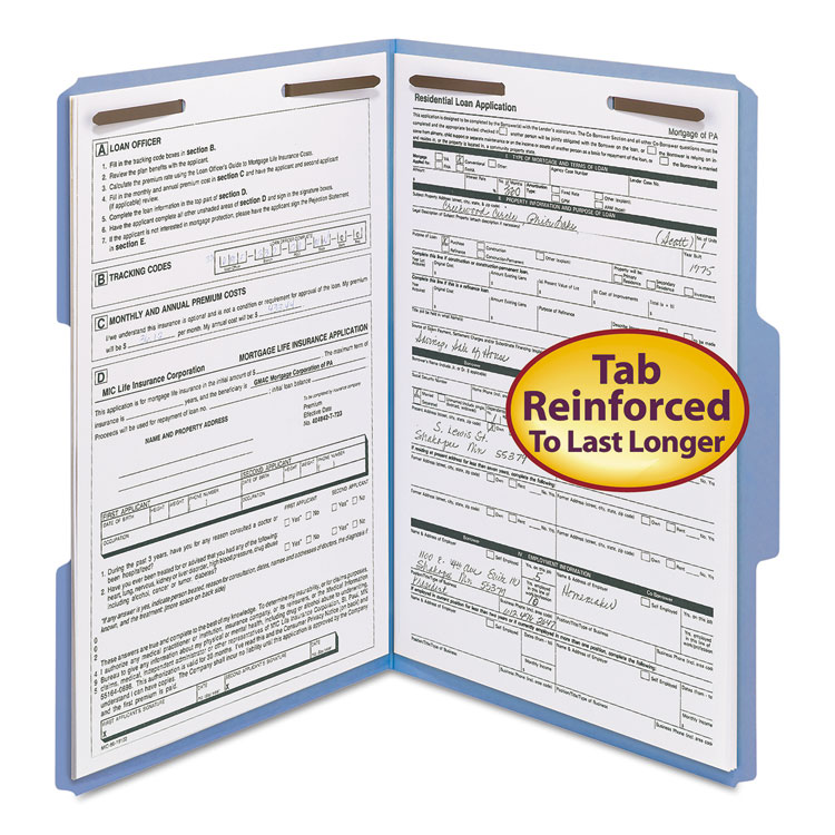 Top Tab Colored 2-Fastener Folders, 1/3-Cut Tabs, Legal Size, Blue, 50/box
