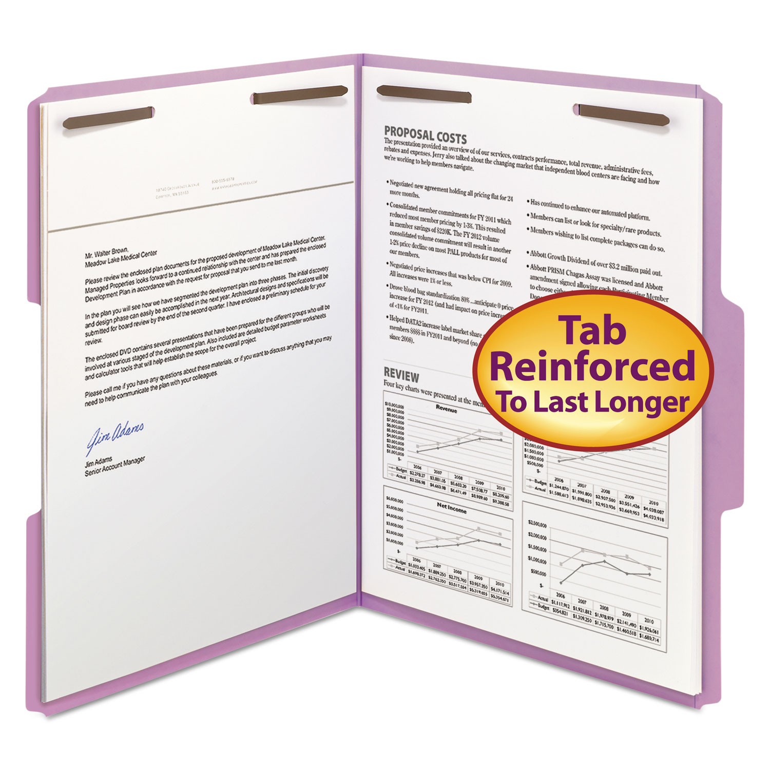Top Tab Colored 2-Fastener Folders, 1/3-Cut Tabs, Letter Size, Lavender, 50/box