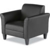Classic, simple lines complement any lounge or reception environment. Soft touch leather upholstery for comfort and style. Black wood pyramid legs. Recommended Applications: Guest, Reception, Waiting Room & Lounge; Seat/Back Color: Black; Arms Included: Yes. Compliance Standards: GREENGUARD Indoor Air Quality Certified; Meets or exceeds ANSI/BIFMA standards.
