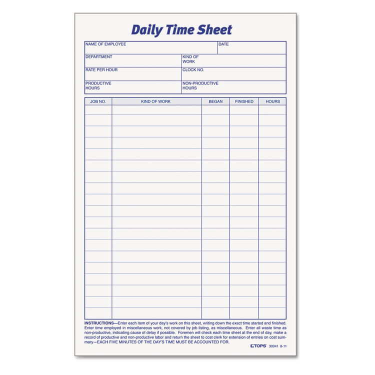Daily Time And Job Sheets, 8 1/2 X 5 1/2, 200/pad, 2/pack