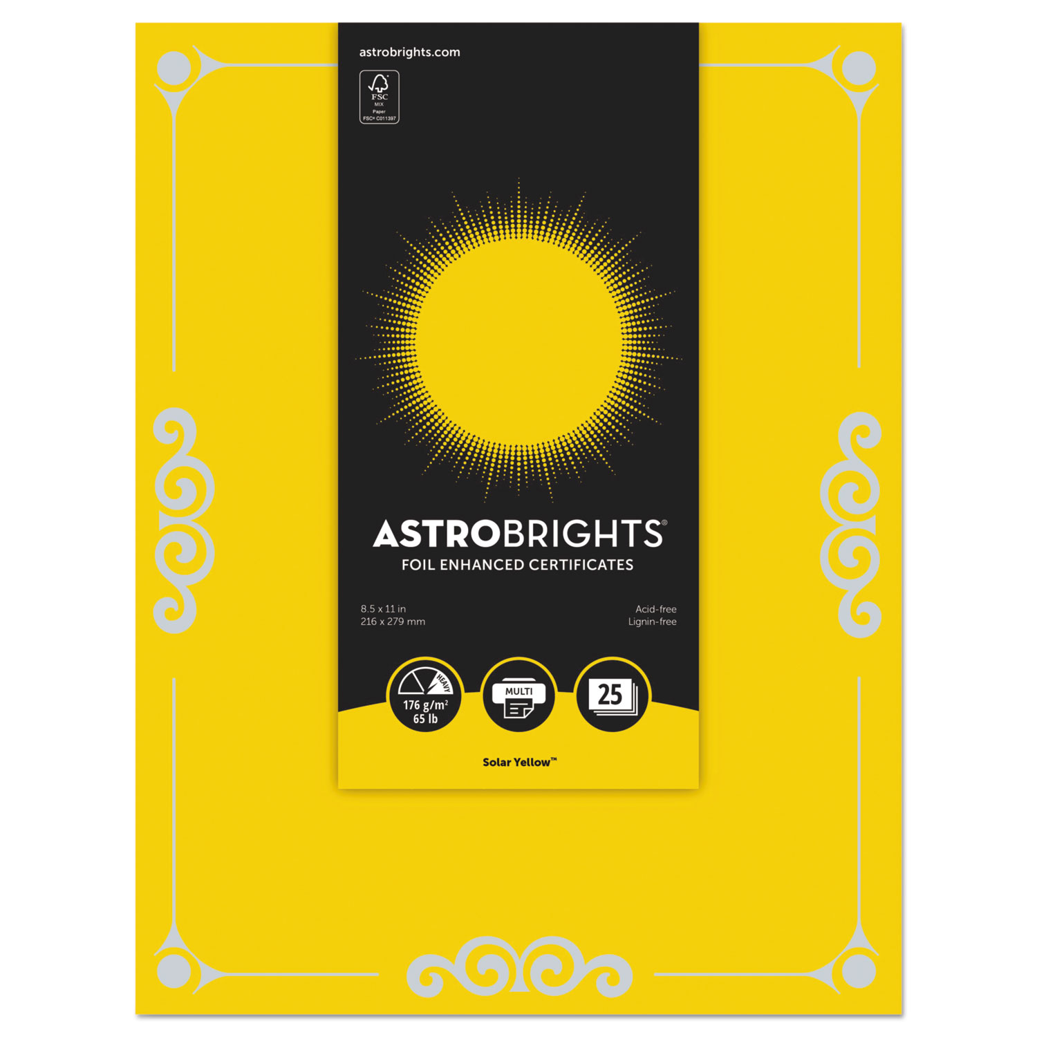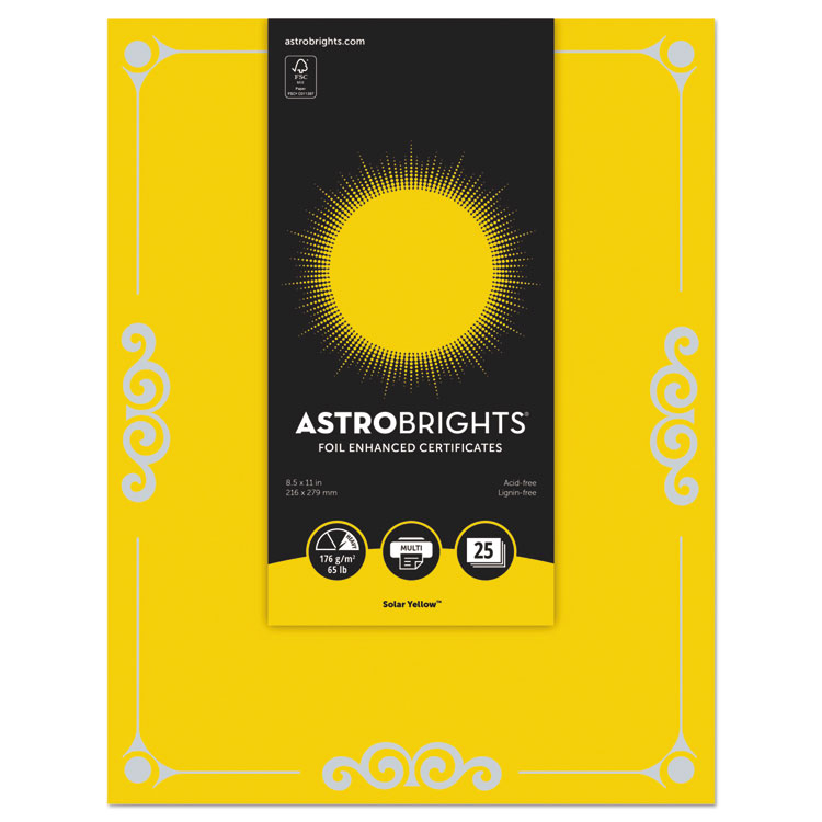 Foil Enhanced Certificates, 8 1/2″ X 11″, Solar Yellow, 25/pk