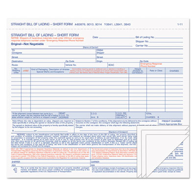 Hazardous Material Short Form, 8 1/2 X 7, Four-Part Carbonless, 50 Forms