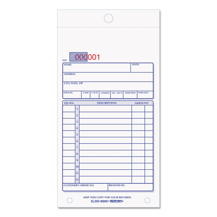 Sales Book, 3 5/8 X 6 3/8, Carbonless Triplicate, 50 Sets/book