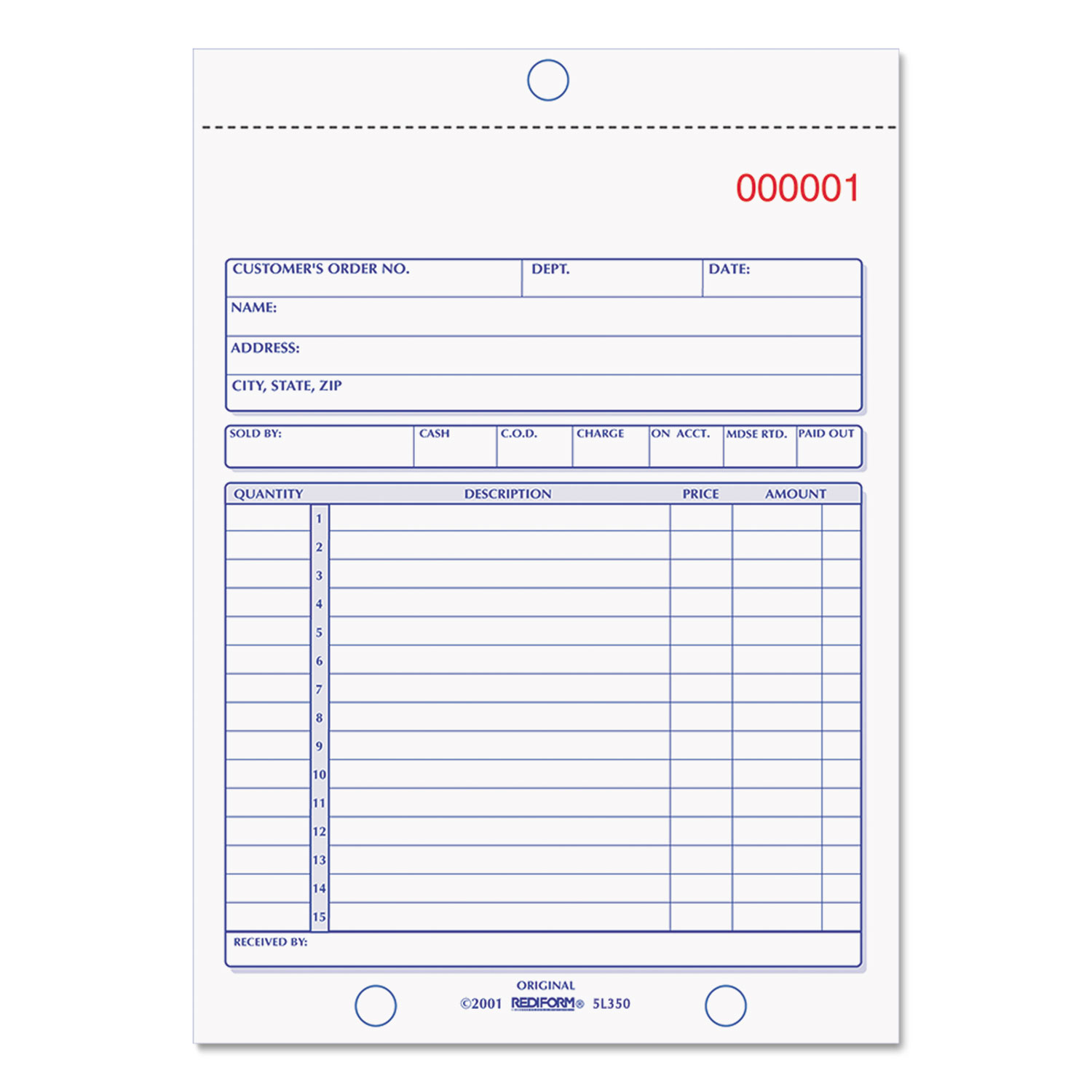 Sales Book, 5 1/2 X 7 7/8, Three-Part Carbonless, 50 Sets/book