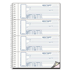 Spiralbound Unnumbered Money Receipt Book, 7 X 2 3/4, Three-Part, 120 Sets/book