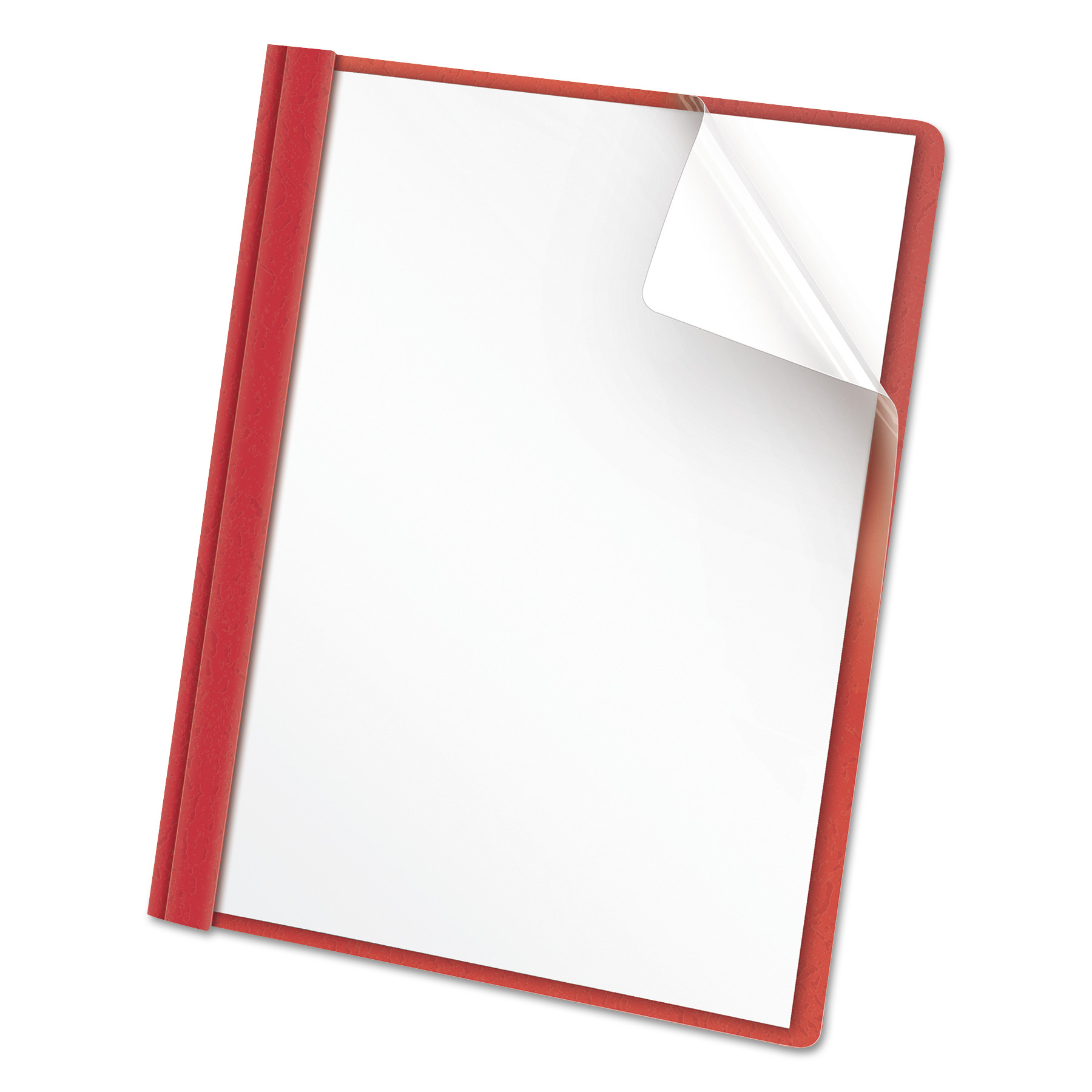 Clear Front Report Cover, Tang Fasteners, Letter Size, Red, 25/box