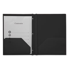 Plastic Twin-Pocket Report Covers With 3 Fasteners, 100 Sheets, Black, 10/pk