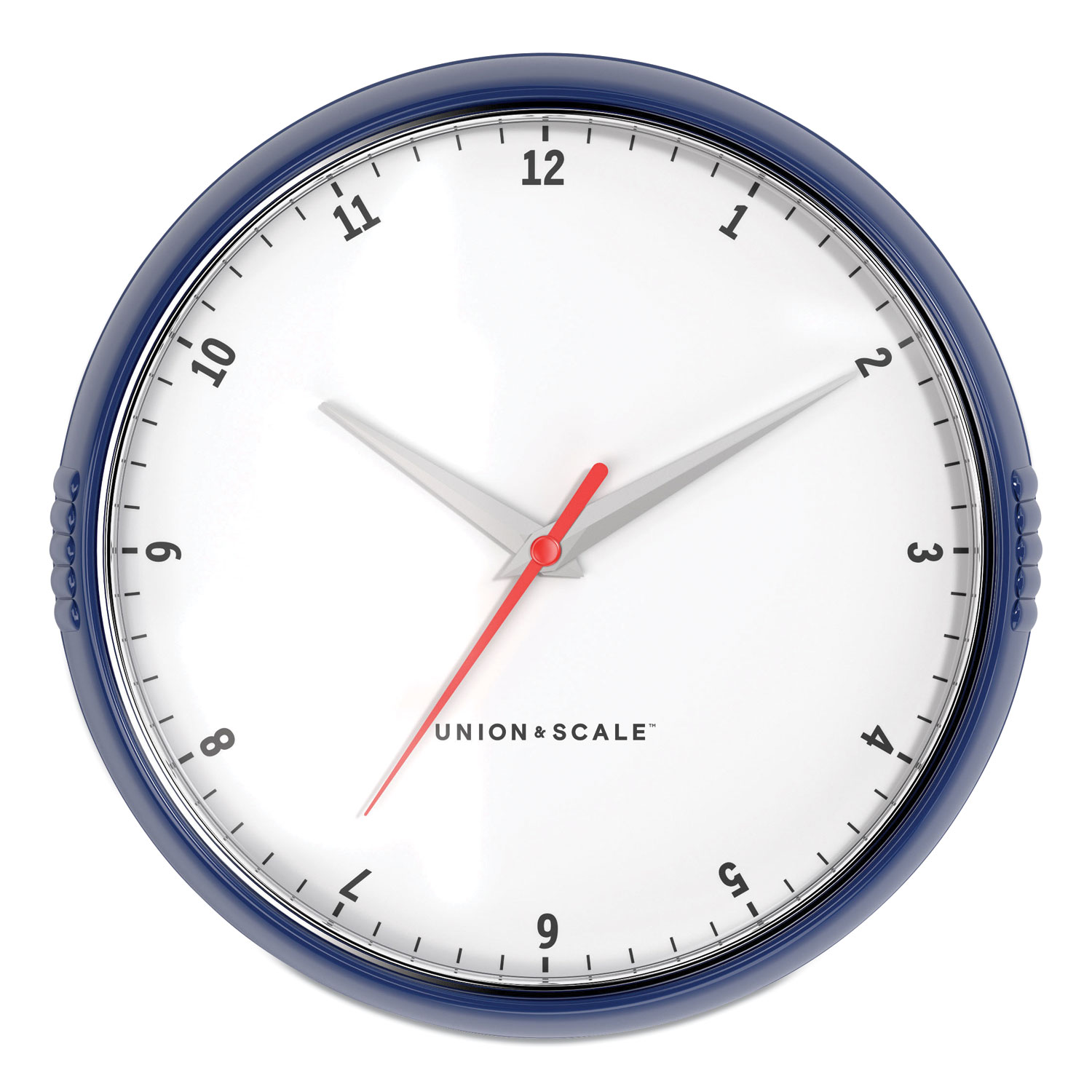 Essentials Mid-Century Round Wall Clock, 9.5″ Overall Diameter, Navy Blue Case, 1 Aa (sold Separately)