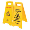 Multilingual Caution Floor Sign, Yellow, 12 x 1.2 x 25