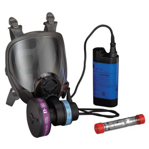 3M™ Powerflow™ Large Face Mounted PAPR features lightweight, compact and mobile design with facepiece mounted motor/airflow unit. It includes rechargeable nickel cadmium battery that lasts up to 8 hrs per charge and is ideal for abatement, nuclear/utilities, smelting, lead reclamation, pharmaceutical, foundry/steel and nuclear.