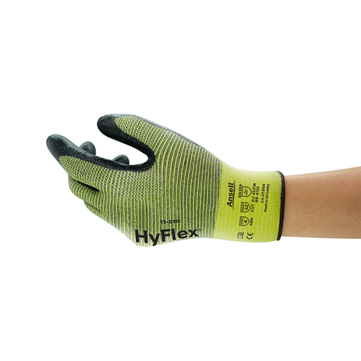 Ansell HyFlex® Size 6 Cut Resistant Work Gloves feature a black foam nitrile coating on palm for an increased grip in light oil conditions with good abrasion resistance. Light duty ergonomic gloves come with a yellow DuPont™ Kevlar® liner with spandex that offers minimizing the risk of snags. Gloves with Knitwrist are made from latex-free natural rubber and are also free from silicone providing optimum safety to workers as well as product protection. Carpentry, drywall, roofing, glass installation are some of the areas where the gloves can be used. Gloves are worn during electrical wiring in residential and commercial structures or while forming, machining and bending of small sharp parts.