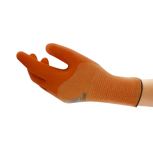 Ansell ActivArmr® Size 10 Black/Orange Nitrile Coated Cut Resistant Gloves with knit wrist cuff are made of neoprene for enhanced durability. Thumb style Gloves come with nylon lining to protect from minor heat and burn injuries.