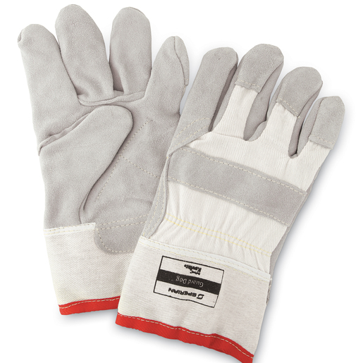 Perfect Fit® Guard Dog® Jumbo Premium Leather Palm Gloves with safety cuff feature double lock 100% Kevlar® reinforced stitching with seamless knit liner of DuPont™ Kevlar® and have leather knuckle strap. Gloves with canvas outer shell include gun cut with quality split leather and gauntlet cuff for easy donning and doffing. They find use in manufacturing, steel and metal applications. They are not recommended for use with moving or serrated blades for user safety.