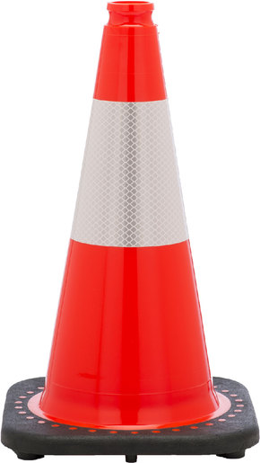 JBC™ 18″ Orange PVC Traffic Cone with black base and 6″ 3M™ reflective collar is made PVC for superior durability and superior flexibility. Cone features a UV inhibitors to prevent fading. It meets MUTCD standards and are NCHRP-350 certified.
