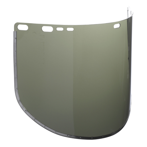 Kimberly-Clark Professional* Jackson Safety* F30 Dark Green Acetate Faceshield measures 9″ X 15 1/2″ X 0.04″ and gives protection against dust, small particles, chemical splash. It resists scratches which make it perfect for premium optics and cast sheet acetate secures against splash. Faceshield is great for use with Jackson Safety* 170- S B headgear and meets the requirements of ANSI Z87.1 standards.