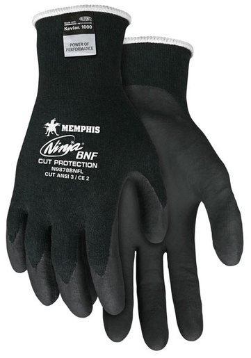The Memphis Ninja N9878BNF is constructed with DuPont™ Kevlar® patented Stretch Armor Technology. Cut-resistant gloves with DuPont™ Kevlar® patented Stretch Armor Technology help deliver the cut protection and suppleness needed by skilled workers. Cut protection is the goal of this glove and it scores ANSI level A3 and CE level 2. The N9878BNF also features a BNF coating for superior grip and abrasion protection and is touch screen friendly.