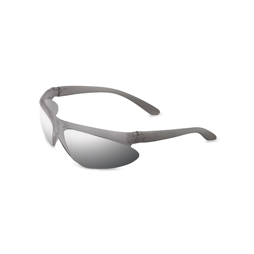 Dalloz Safety Sperian A400 Wilson® Safety Glasses with gray frame featuring sporty, wrap-around design have superior side coverage. Glasses have silver polycarbonate anti-scratch hard coat mirror lens for clear vision. Economically affordable safety glasses feature a sleek, wrap-around one piece lens for distortion free vision. It complies with ANSI Z87+ high impact standards.