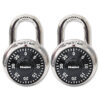 Combination Lock, Stainless Steel, 1 7/8″ Wide, Black Dial, 2/pack