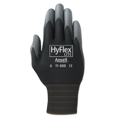 Hyflex Lite Gloves, Black/gray, Size 8, 12 Pairs