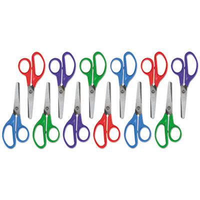 Kids’ Scissors, Rounded Tip, 5″ Long, 1.75″ Cut Length, Assorted Straight Handles, 12/pack