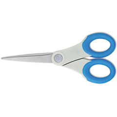 Scissors With Antimicrobial Protection, Pointed Tip, 7″ Long, 3″ Cut Length, Blue Straight Handle