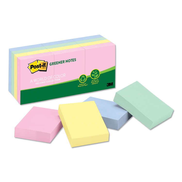 Recycled Note Pads, 1.38 x 1.88, Assorted Helsinki Colors, 100-Sheet, 12/Pack