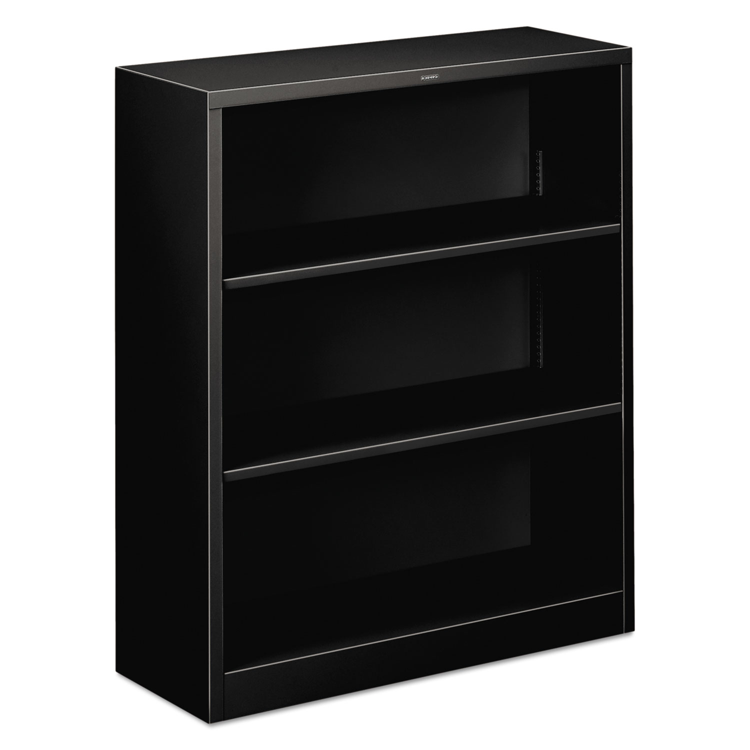 Metal Bookcase, Three-Shelf, 34-1/2w X 12-5/8d X 41h, Black
