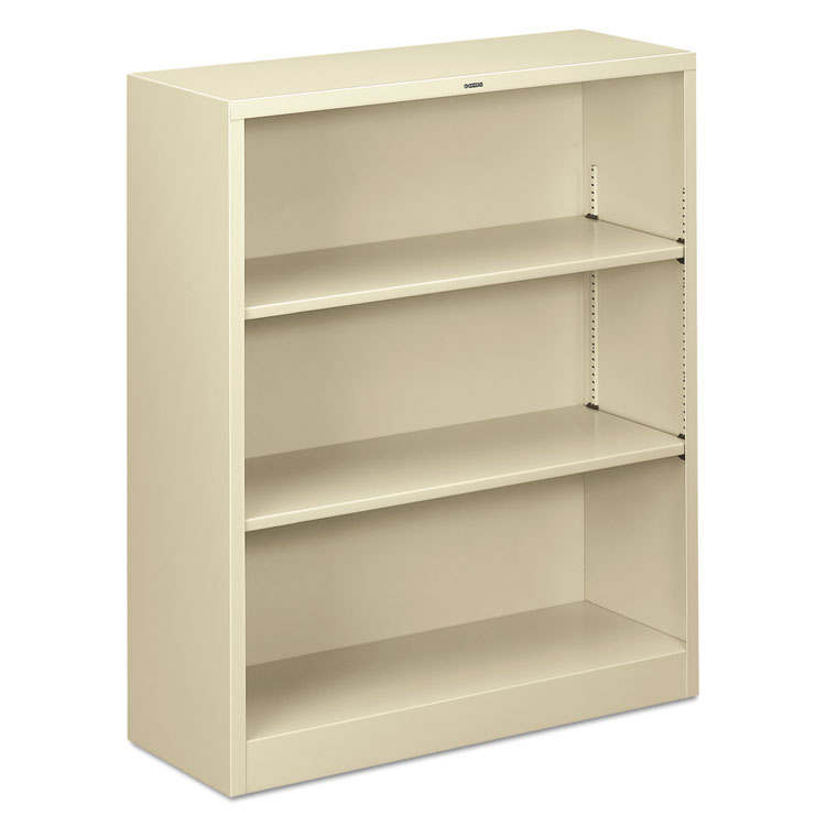 Metal Bookcase, Three-Shelf, 34-1/2w X 12-5/8d X 41h, Putty