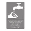 Ada Sign, Employees Must Wash Hands… Tactile Symbol/braille, 6 X 9, Gray