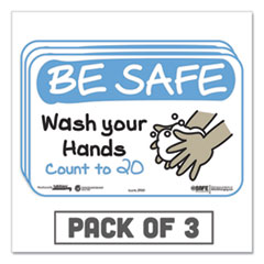 Besafe Messaging Education Wall Signs, 9 X 6, “be Safe, Wash Your Hands, Count To 20”, 3/pack