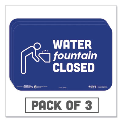 Besafe Messaging Education Wall Signs, 9 X 6, “water Fountain Closed”, 3/pack