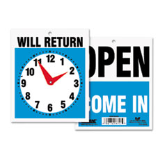 Double-Sided Open/will Return Sign W/clock Hands, Plastic, 7 1/2 X 9