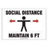 Social Distance Signs, Wall, 10 x 7, “Social Distance Maintain 6 ft”, Human/Arrows, White, 10/Pack