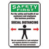 Social Distance Signs, Wall, 7 x 10, Customers and Employees Distancing Clean Environment, Humans/Arrows, Green/White, 10/PK