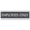 Century Series Office Sign, EMPLOYEES ONLY, 9 x 3, Black/Silver
