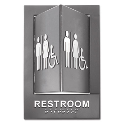 Be the first to review “Pop-Out ADA Sign, Wheelchair, Tactile Symbol/Braille, Plastic, 6 x 9, Gray/White”