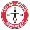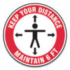 Slip-Gard Social Distance Floor Signs, 17″ Circle, “keep Your Distance Maintain 6 Ft”, Human/arrows, Red/white, 25/pack