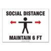 Social Distance Signs, Wall, 10 x 7, “Social Distance Maintain 6 ft”, Human/Arrows, White, 10/Pack