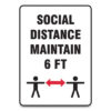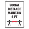 Social Distance Signs, Wall, 7 X 10, “social Distance Maintain 6 Ft”, 2 Humans/arrows, White, 10/pack