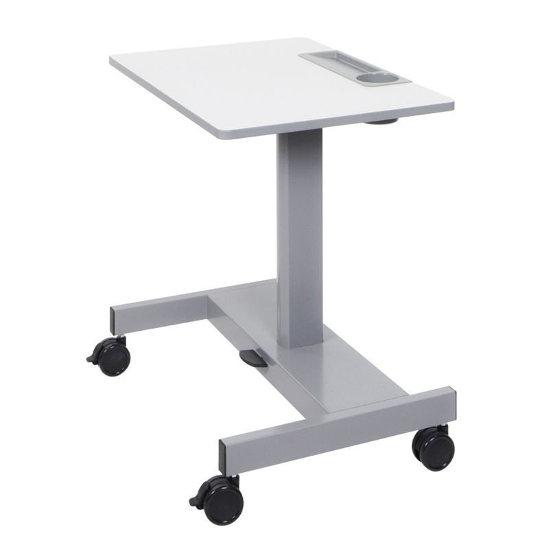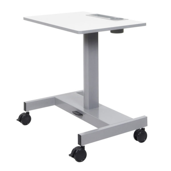 STUDENT-P-S – Pneumatic Sit/Stand Student Desk – Short Version. Designed specifically for the lower grade levels, Luxor’s short pneumatic adjustable height student standing desk allows young children to sit or stand comfortably throughout the school day. A pneumatic foot pedal easily adjusts the desk height between 26″ and 32.3″ while four casters, two with locking brakes, facilitate student collaboration and classroom flexibility. The desktop incorporates a placeholder for pencils and a water bottle as well as a hook to hang a backpack. Schools are turning to standing desks as numerous studies have shown their extensive benefits in aiding student engagement and improving mental and physical health. Now the elementary grades can benefit from a sit/stand desk that meets their unique size requirements.
