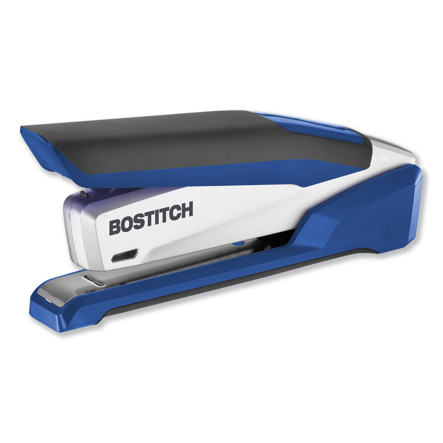 Inpower Spring-Powered Premium Desktop Stapler, 28-Sheet Capacity, Blue/silver