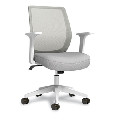 Essentials Mesh Back Fabric Task Chair With Arms, Supports Up To 275 Lb, Gray Fabric Seat, Gray Mesh Back, White Base